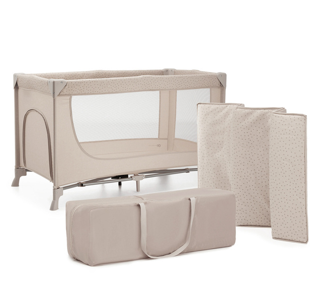 JOY 2 to łóżeczko 2 w 1: pełni funkcję łóżeczka dla starszego dziecka oraz łóżeczka turystycznego. W zestawie znajduje się torba do przenoszenia z praktycznymi uchwytami oraz podłoga z wypełnieniem, a więc nie musisz kupować dodatkowego materaca. JOY 2 można też wykorzystać jako domowy plac zabaw, ma specjalne wyjście z boku, zapinane na zamek.