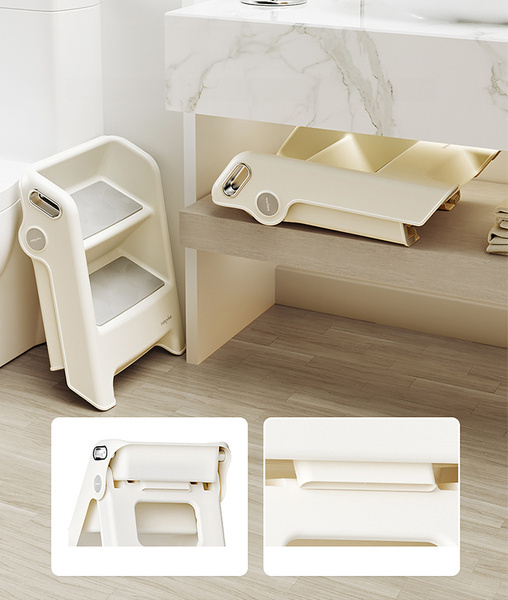 Rozkładana drabinka cechuje się solidną konstrukcją, posiada 2 stopnie schodków z antypoślizgową matą, zapewniającą maksymalne bezpieczeństwo podczas korzystania. Jej funkcjonalność sprawia, że może być wykorzystywana w różnych sytuacjach, nie tylko podczas wizyt w toalecie, ale również w łazience przy czynności mycia rączek czy zębów.