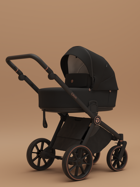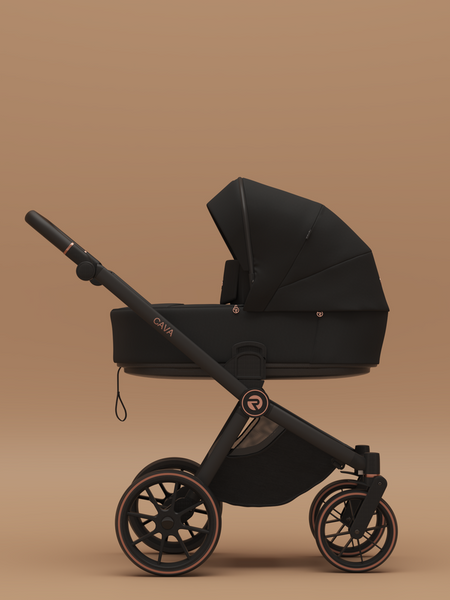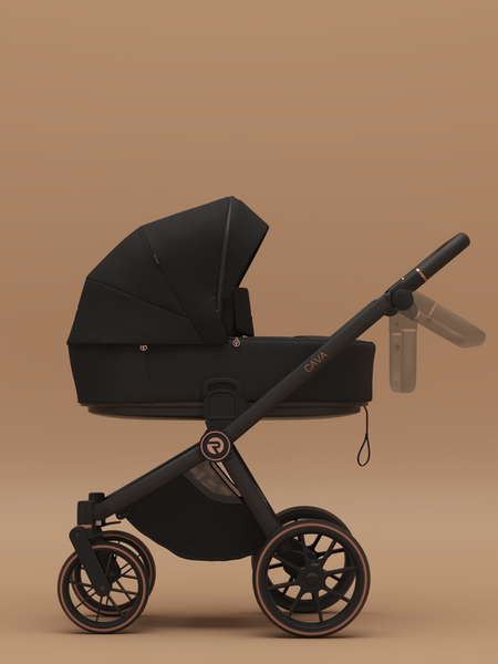 Gondola wózka dziecięcego CAVA posiada innowacyjną funkcję łatwego składania na płasko i ponownego napinania. Mechanizm składania znajduje się pod gondolą i obsługiwany jest jedną ręką. Wystarczy wcisnąć jeden przycisk. Ponowne napięcie gondoli również jest niezwykle proste i szybkie. Po prostu pociągnij za pasek w tylnej części gondoli.