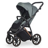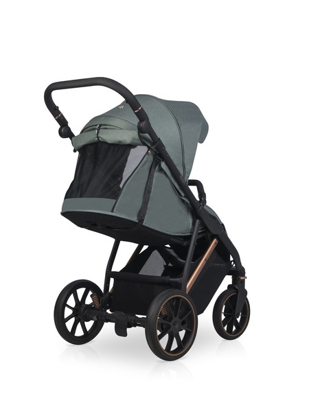 Duży skok tylnych amortyzatorów w połączeniu z łamaną regulacją wysokości rączki ułatwiają podbijanie wózka na krawężnik nawet z dzieckiem o wadze 22 kg. Duże i zarazem lekkie koła żelowe są całoroczne i niezwykle odporne na ścieranie.