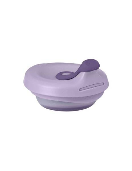 Oryginalna silikonowa miseczka z pokrywką, dzięki której z łatwością nakarmisz malucha w podróży.