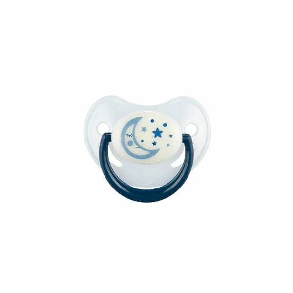 Smoczek uspokajający NIGHT DREAMS wykonany z najwyższej jakości, bezzapachowego i bezsmakowego silikonu. Wyposażony został w gumkę o anatomicznym kształcie. Smoczek dobrze odpowietrza się, dzięki specjalnym otworom wentylacyjnym na tarczce. Posiada świecącą tarczkę, która ułatwia znalezienie smoczka w ciemności. Nie zawiera BPA. Dostępny w kilku kolorach. Przeznaczony dla dzieci powyżej 18 miesięcy.