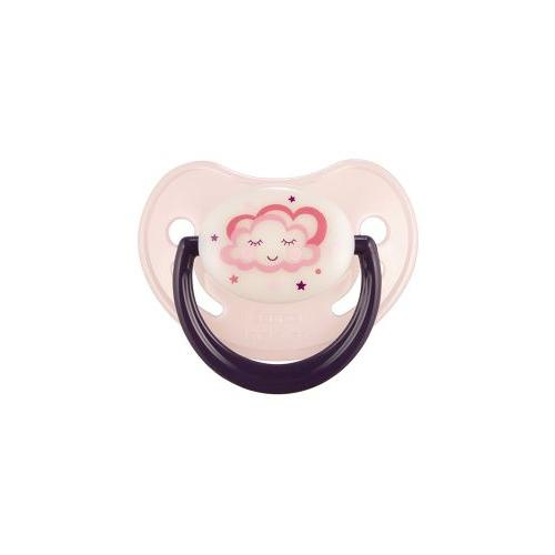 Smoczek uspokajający NIGHT DREAMS wykonany z najwyższej jakości, bezzapachowego i bezsmakowego silikonu. Wyposażony został w gumkę o anatomicznym kształcie. Smoczek dobrze odpowietrza się, dzięki specjalnym otworom wentylacyjnym na tarczce. Posiada świecącą tarczkę, która ułatwia znalezienie smoczka w ciemności. Nie zawiera BPA. Dostępny w kilku kolorach. Przeznaczony dla dzieci powyżej 18 miesięcy.