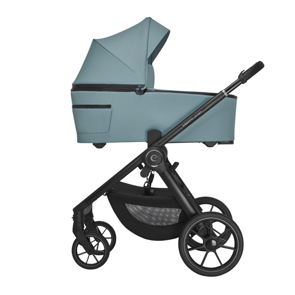 Wyjątkowy i bezpieczny system wypinania gondoli jednym ruchem oraz dodatkowe, specjalne stopery, które gwarantują stabilność i zapobiegają zabrudzeniom spodu gondoli w wyniku stawiania jej na podłożu.