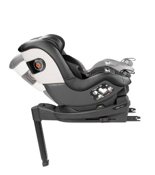 Viaggio Twist montuje się w samochodzie na obrotowej bazie Twist, fotelik obraca się o 90°, co ułatwia umieszczenie lub wyjęcie dziecka oraz zapięcie i regulację pasów bezpieczeństwa.