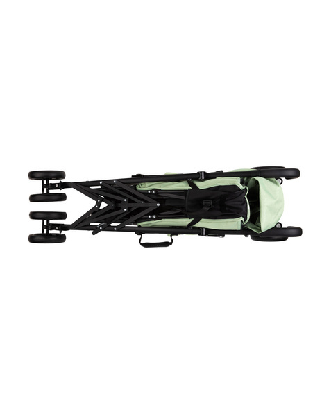 MoMi AKIRA bardzo szybko i łatwo się składa, tworząc podłużny kształt. Dodatkowo wózek posiada rączkę, która pozwala na łatwe przenoszenie.