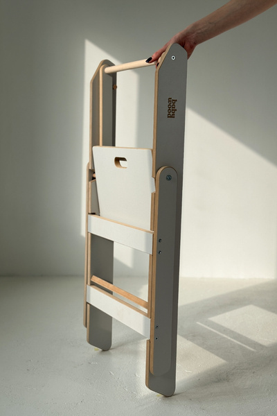 Ten model Kitchen Helpera ma jednak cechę, o której nie sposób nie wspomnieć. Jest SKŁADANY! Co więcej - po złożeniu jest najmniejszym Kitchen Helperem na rynku! Jego wyjątkowa konstrukcja umożliwia łatwe składanie i przechowywanie, co czyni go idealnym rozwiązaniem nawet dla niewielkich przestrzeni kuchennych. Dzięki temu, Twoje dziecko może być bezpieczne i aktywne w kuchni, a Ty zyskujesz więcej miejsca na codzienne czynności.
