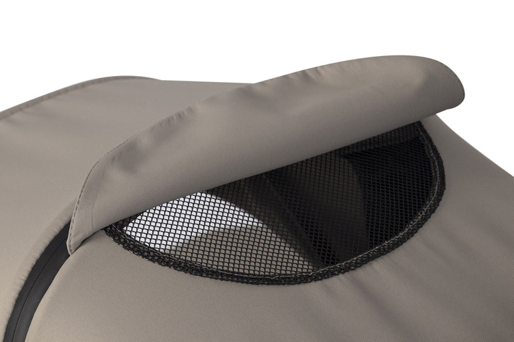 • 2 niezależne budki przeciwsłoneczne z dodatkowymi rozpinanymi sekcjami, daszkami i dużymi panelami wentylacyjnymi w tylnej części,