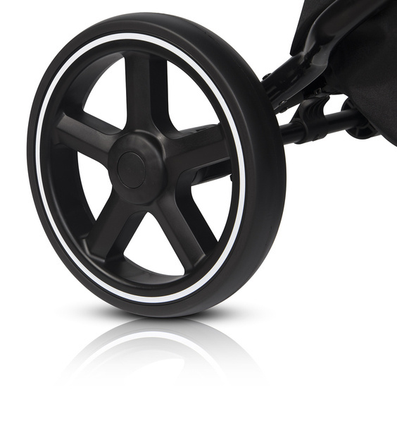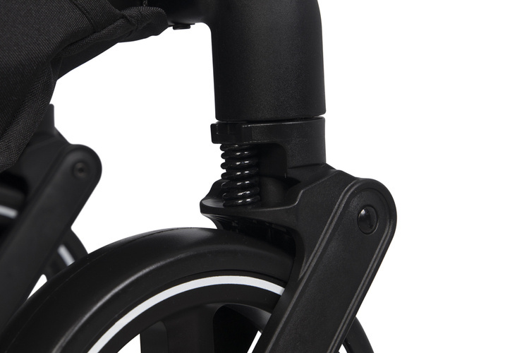 Innowacyjny system 3 amortyzatorów na tylnej osi wózka i 3 amortyzowanych przednich kół pozwala na komfortową jazdę na różnych nawierzchniach. Tylne sprężyny zostały poddane specjalnemu procesowi hartowania, aby dłużej zachowywały swoją sprężystość nawet przy maksymalnym obciążeniu 44 kg.
