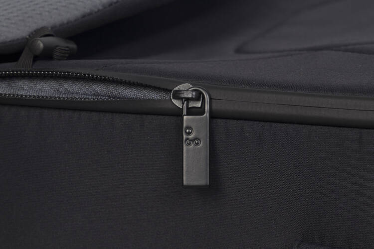 Miękka gondola ECHO posiada dopinaną budkę przeciwsłoneczną. Górna pokrywa może być całkowicie zdemontowana co przyda się w ciepłe dni. Wnętrze wykonane zostało z miękkiej bawełny w jasno szarym kolorze. Gondola posiada również pasy do przenoszenia.