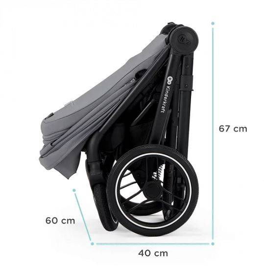 Gondola wózka Kinderkraft Nea skłąda się na płasko, więc zajmie minimalną ilość miejsca podczas podróży, czy w przechowywaniu.