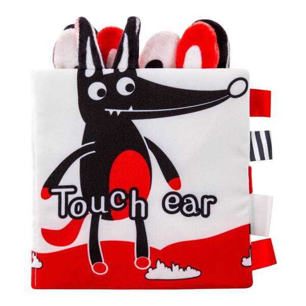 Książeczka jest wykonana z miękkiego, przyjemnego w dotyku materiału, w kontrastowych kolorach, szeleszcząca i grzechocąca.