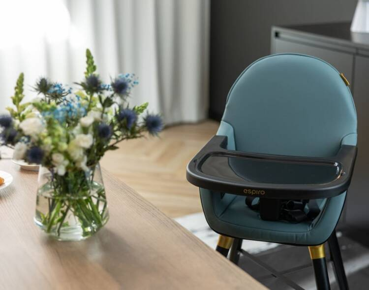 Espiro yuko to elegancja i funkcjonalność - podwójna taca ułatwia utrzymanie krzesełka w nienagannej czystości.