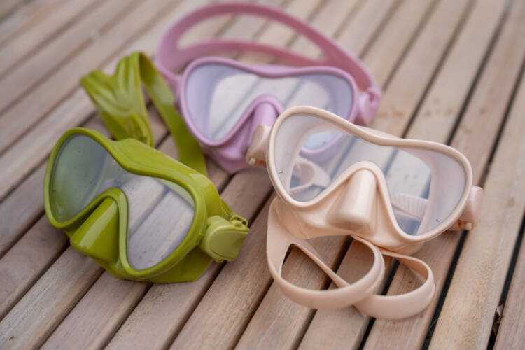 • Nasze silikonowe maski do nurkowania posiadają regulowany pasek na głowę oraz p