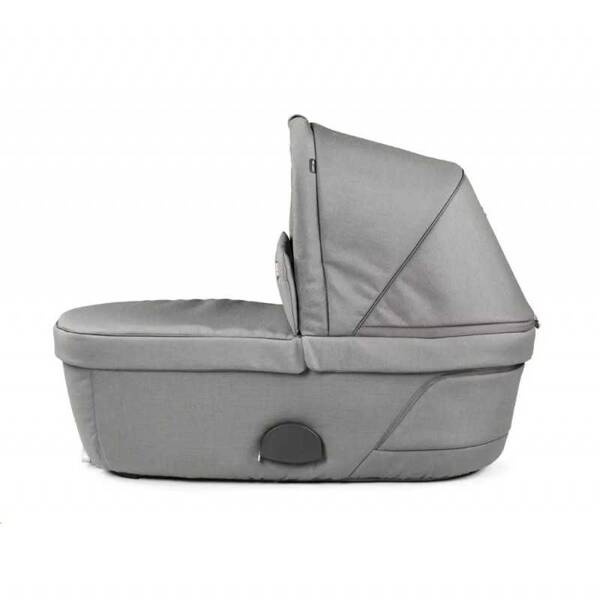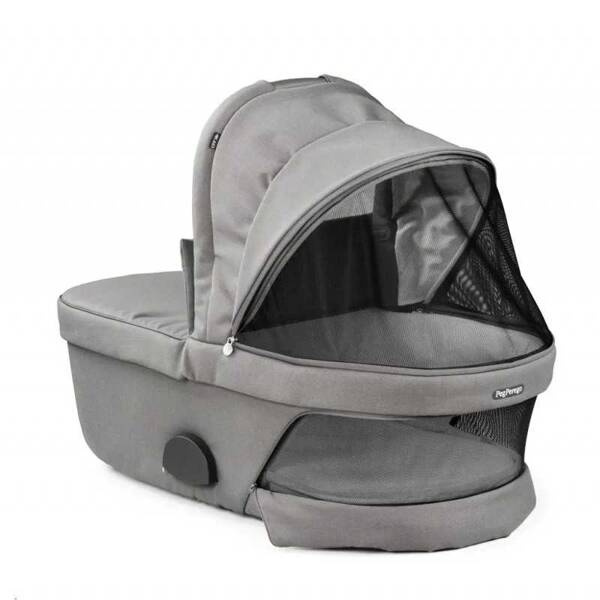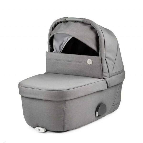 Duże, przekładane siedzisko wyposażone w pięciopunktowe pasy bezpieczeństwa przeznaczone jest dla dzieci do 22 kg. Oparcie i podnóżek posiadają wielostopniową regulację dla komfortowej pozycji siedzącej i leżącej dziecka. Pałąk ze skóry ekologicznej otwiera się z obu stron.