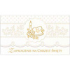 Zaproszenia na I Komunię Św. (95 x 165 mm). Perłowy tłok, złocone napisy, złocone tłoczenia Ozdobny papier, białe koperty. Seria Elegance. Wzory wysyłane losowo.