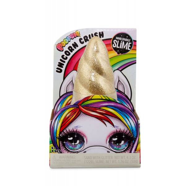 Magiczny róg jednorożca Unicorn Crush to seria fantastycznych glutków - slime'ów, która emanuje zabawą! Zrób magicznego, połyskującego glutka z Poopsie Unicorn Crush! Rozpakuj złoty, mieniący się róg jednorożca, by odkryć pod spodem kolejny kolorowy róg, który możesz przełamać, by dostać się do kolejnych niespodzianek. Zanurz róg w wodzie na ok. 10 sekund, a następnie przełam go, aby zobaczyć niesamowitą, błyszczącą eksplozję. Z ukrytych saszetek możesz stworzyć cudowny slime, który po skończonej zabawie możesz przechowywać w złotym rogu. W serii znajduje się aż 35 różnych kolorów i brokatów slime'a.