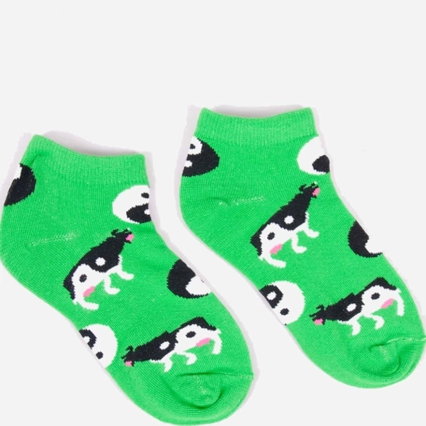 Model uniwersalny w wesołym kolorze zielonym, z motywem krowy.