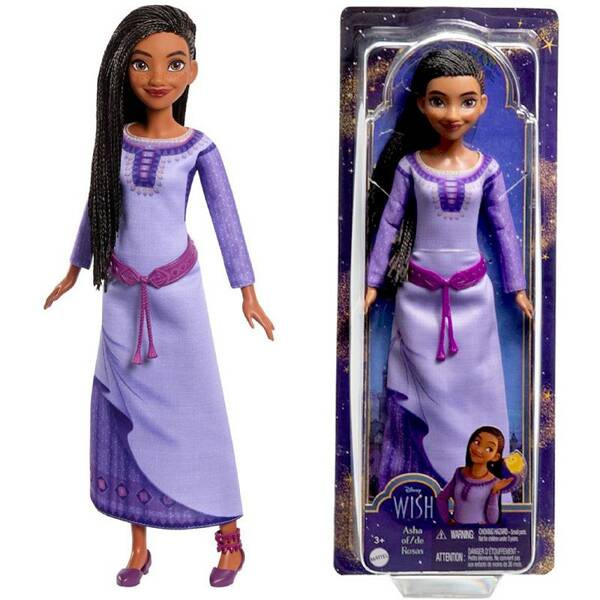 Inspirowana filmem Życzenie Disneya lalka Asha z Rosas promienieje magią tego animowanego musicalu. Lalka zachwyca w swojej filmowej stylizacji z autentycznymi detalami, takimi jak sukienka z paskiem i długie włosy zaplecione w warkoczyki. Fani będą chcieli zebrać wszystkie zabawki inspirowane tym filmem. Lalki są sprzedawane oddzielnie, zależnie od dostępności. Lalki nie stoją samodzielnie. Kolory i elementy dekoracyjne mogą się różnić.