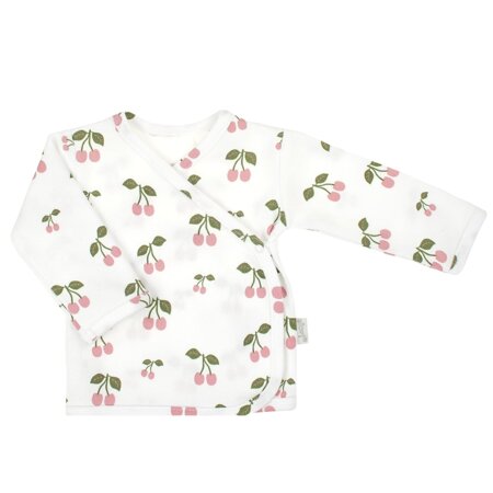 Bawełniana koszulka,uszyta ze 100% bawełny w kolorze białym w wzór wisienek. Ubranko posiada zakładany przód, zapinany na wygodne bezniklowe napy. Fason ten pozwala na swobodne ubieranie noworodka. Koszulka posiada praktyczne wywinięcia w rękawach w rozmiarze 68, chroniące maluszka przed zadrapaniem. Materiał posiada certyfikat Oeko-Tex Standard 100 Tekstylia godne zaufania.
