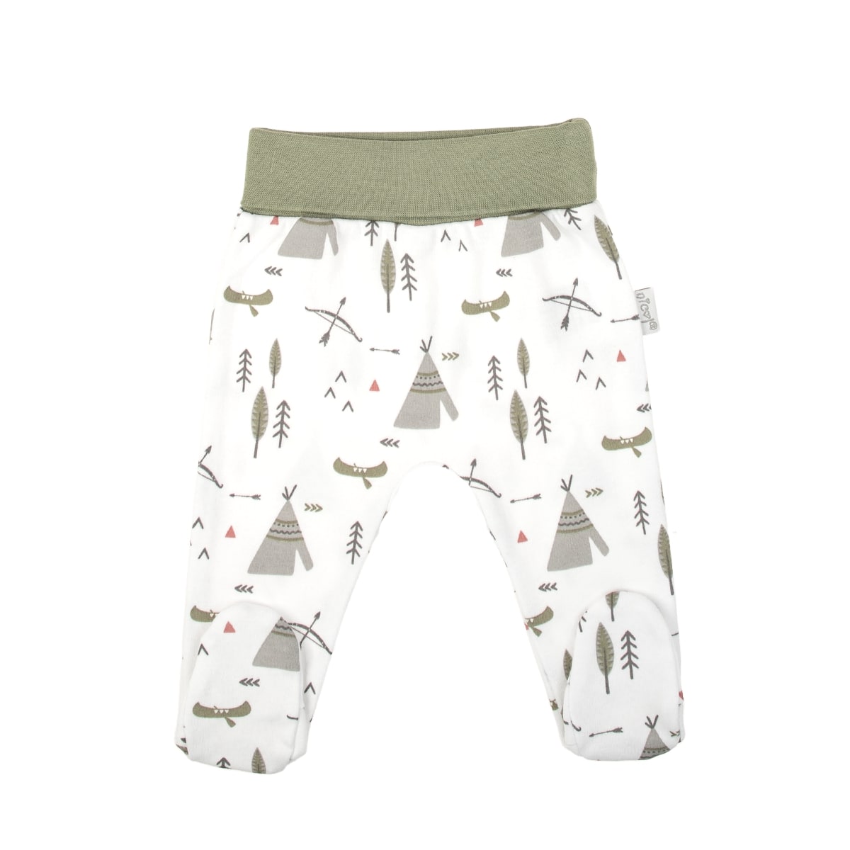 Wygodne i miękkie półśpioszki dla chłopca, uszyte ze 100% przewiewnej, białej bawełny w motyw indiański. Wysoka jakość materiału została potwierdzona certyfikatem Oeko-Tex Standard 100 Tekstylia godne zaufania. Półśpioszki mają luźny fason i lekko obniżony stan by pomieścić pieluszkę, posiadają szeroki, bezuciskowy ściągacz w pasie, zapewniający pełny komfort maluszkowi.