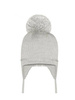 Wiązana czapka polskiej firmy Barbaras. Pompon. Od spodu czapka podszyta jest przyjemną dla skóry bawełną. Czapka zakrywa uszy.