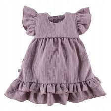 Sukienka dziecięca z kolekcji Botanic uszyta z miękkiej i przyjemnej w dotyku dzianiny bawełnianej. Sukienka rozpinana jest na karku.