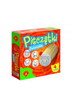 W zestawie znajdują się 4 pieczątki, które możńa odbijac na kartce tuszem z poduszki znajdującej się w plastikowym pojemniku.
