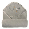 Bawełniany ręcznik kąpielowy frotte z kapturkiem w rozmiarze 100x100 cm z zawieszką pozwalającą na swobodne wycieranie dziecka.