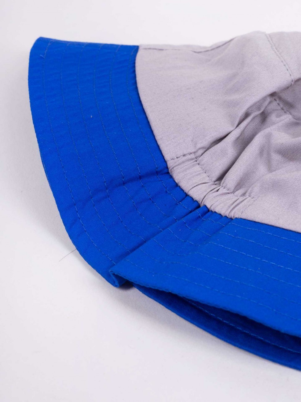 Chłopięcy kapelusz letni w kolorze szaro – niebieski z motywem koszykarskim. Z przodu ozdobny napis: LETS HOP IT UP! W części tylnej znajduje się wszyty gumowy ściągacz, który ułatwia dopasowanie czapeczki do główki dziecka.