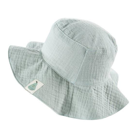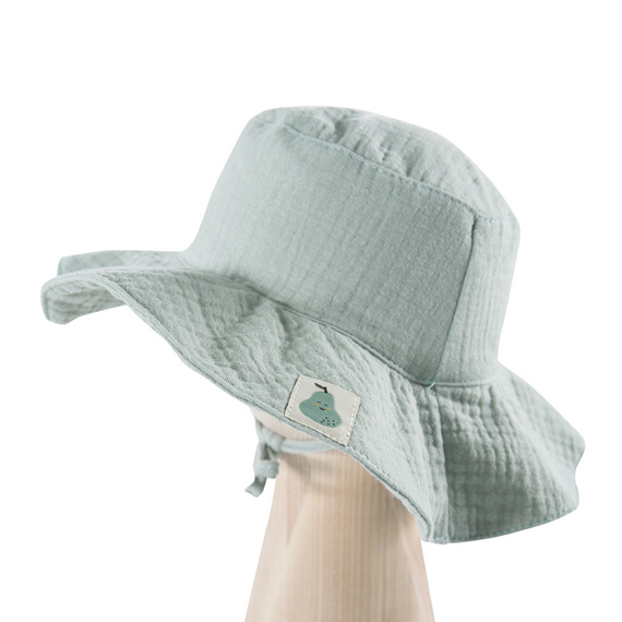 Kapelusz uszyty został w 100% z przewiewnej bawełny muślinowej w kolorze zielonym. To absolutny niezbędnik letniej garderoby i bardzo modny dodatek do każdej stylizacji. Kapelusz zapewni maluchowi odpowiednią ochronę przed słońcem, podczas spacerów i zabawy na świeżym powietrzu. Sprawdzi się podczas wypoczynku na plaży, nad jeziorem i w górach.