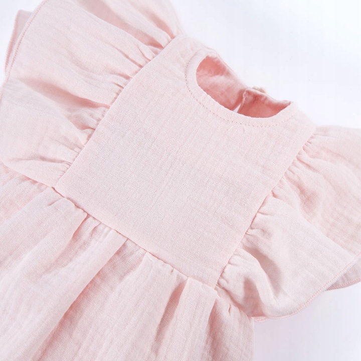 Sukienka dziecięca uszyta z miękkiego i przyjemnego w dotyku muślinu.