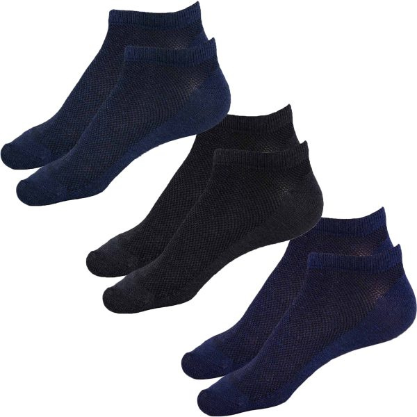 Niższe skarpetki bawełniane ze ściągaczem w okolicach kostki – na całej górnej powierzchni mają panel z przewiewnej dzianiny ażurowej dzięki czemu będą doskonałe na lato – zestaw zawiera trzy pary skarpetek.