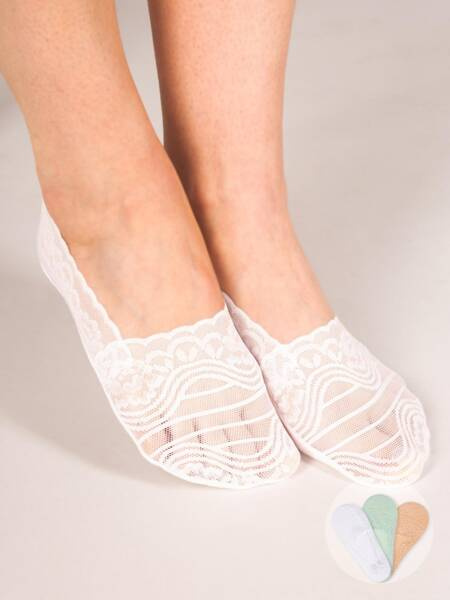 Skarpety stopki damskie w wydaniu bardziej eleganckim i bardziej z klasą. W kolorach: białym, beżowym i miętowym, ozdobione delikatną koronką. Posiadają bawełniany spód, zapobiegający poceniu się stopy.