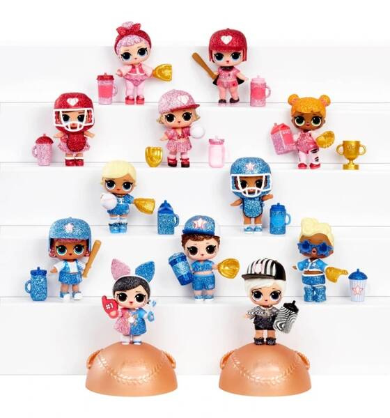 Kolekcja 12 błyszczących laleczek będzie teraz rozgrywać mecz baseballowy. Wszystkie błyszczące lalki mają stroje sportowe i odpowiednio dobrane akcesoria takie jak kij baseballowy, kask czy rękawicę. Dodatkowo każda laleczka ma ze sobą butelkę na wodę, aby ugasić pragnienie podczas treningu czy też meczu. Wybierz ten zestaw i ciesz się całą kolekcją baseballowych laleczek.