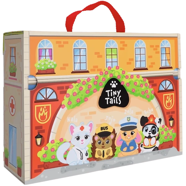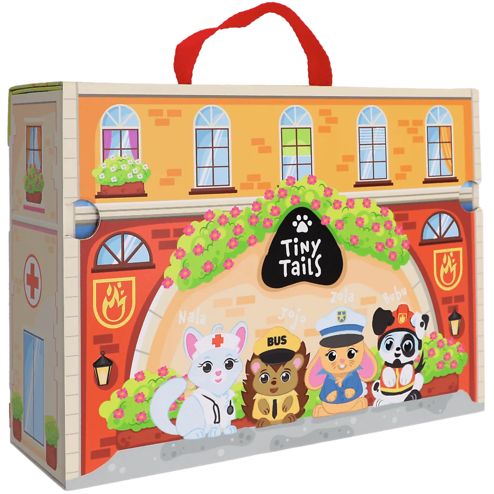 Magnetic box: City marki Tiny Tails to magnetyczny kuferek z drewnianymi figurkami i puzzlami. Sam kuferek oferuje nam więcej niż tylko możliwość przechowywania i wygodnego przenoszenia elementów!Po otwarciu zamienia się w miasteczko i staje się miejscem do zabawy.