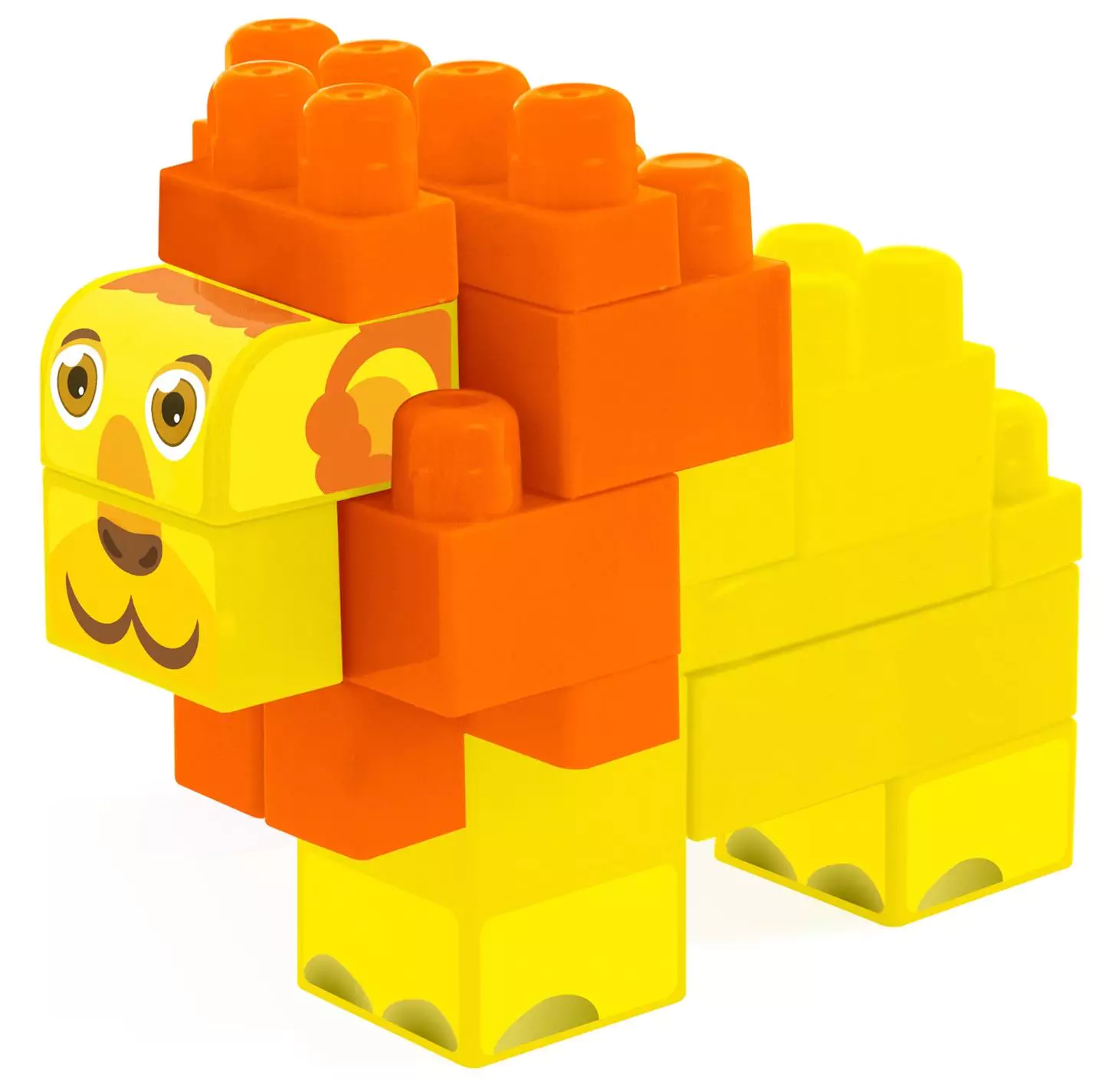 W zestawie z królem dżungli, lwem, 18 kolorowych klocków pozwoli zbudować figurkę lwa.