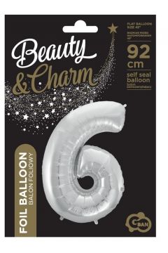 Balon urodzinowy w kształcie cyfry 6 w kolorze srebrnym. 85 Cm.