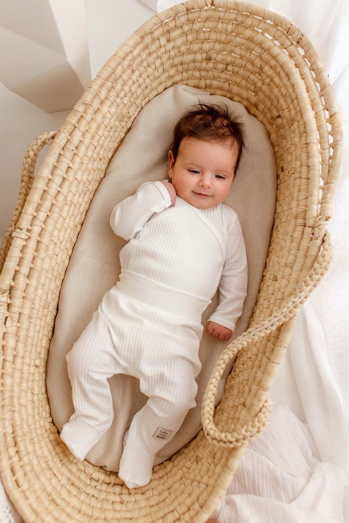 Spodnie z 100% bawełny o szerokim prążku, przyjemna w dotyku. Delikatny materiał nie podrażnia i nie powoduje alergii. Sprawdzi się u dzieci z problemami skórnymi. Spodnie są rozciągliwe, więc nie ograniczają i nie krępują ruchów Maluszka. Szeroki, nieuciskający ściągacz w pasie utrzymuje ubranko na miejscu w trakcie codziennych aktywności. Anatomiczny fason zapewnia dziecku komfort noszenia. Tkanina jest przewiewna, zapewnia odpowiednią cyrkulację powietrza, dzięki czemu dziecko nie przegrzewa się.