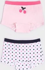 Dziewczęce bokserki dostępne w dwupaku, zapakowane w eleganckie pudełko. W dziewczęcych kolorach, z motywem wisienek i kropek. Dedykowane dla dziewczynek, które nie lubią krótko skrojonych fig i preferują bieliznę w postaci dobrze dopasowanych bokserek. Posiadają szeroką gumkę w pasie. Elastyczne, nie upijają, dzięki temu każda większa dziewczynka będzie czuła się w nich komfortowo.