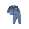 Dzianinowy komplet dresowy w kolorze niebieskim z kolekcji Jump, będzie idealny dla maluszka. Bluza oraz spodnie połączeniu z kolorowymi t-shirtami lub body dziecięcymi stworzą idealny komplet wyjściowy.