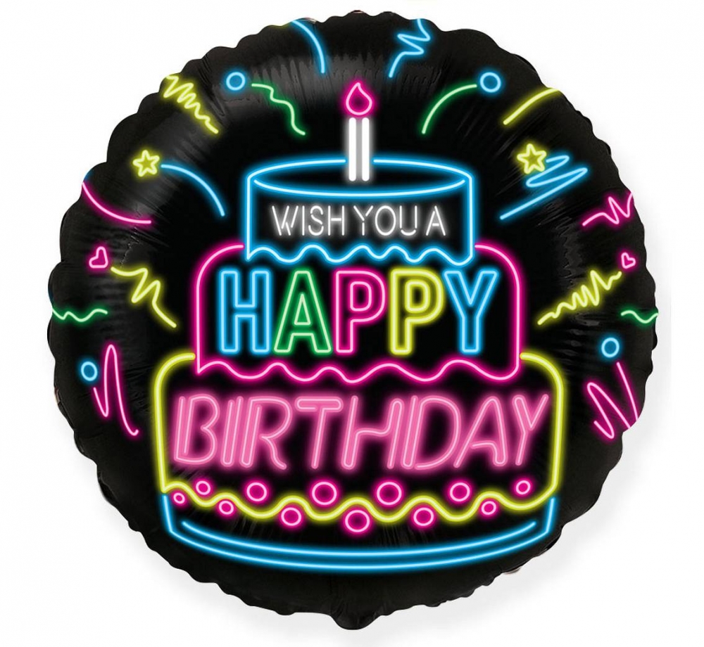 Godan Foliowy Balon Happy Birthday Neon 18 Cali