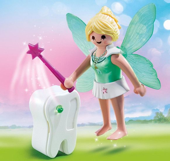 Zawartość: figurka wróżki-zębuszki, ząbek skrytka oraz akcesoria.