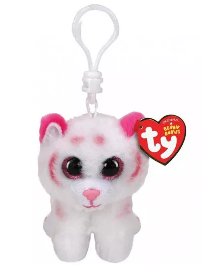 Pluszak Beanie Boos różowy-biały tygrys TABOR, o wysokości 8,5 cm z zawieszką - Clip