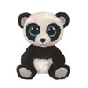 Maskotka TY Beanie Boos BAMBOO panda 24cm. Maskotka TY Beanie Boos to czarno-biała panda, o imieniu Bamboo. Maskotka została wykonana z miękkiego i przyjemnego w dotyku pluszu. Posiada piękne, brokatowe oczy. Produkt zawiera cechy charakterystyczne zwierzątka, które odwzorowuje. Panda ma doszyte uszka i łapki z dodatkiem błyszczącego, srebrnego brokatu oraz ogonek. Duża, urocza główka automatycznie przyciągnie uwagę dzieci. Małe, miękkie włoski dobrze odwzorowują sierść zwierzątka.