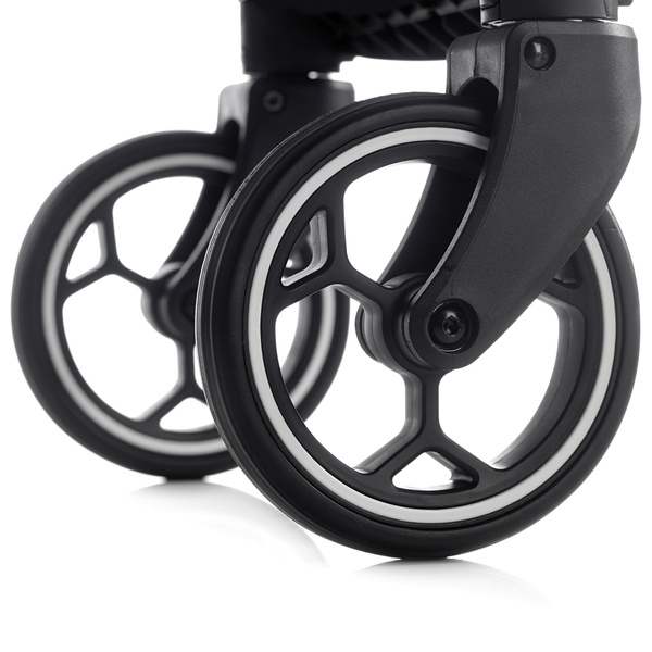 Koła wózka o średnicy 13,5 cm są piankowe i wyposażone zostały w amortyzację, która zapewnia maluchowi komfort podczas spacerów.