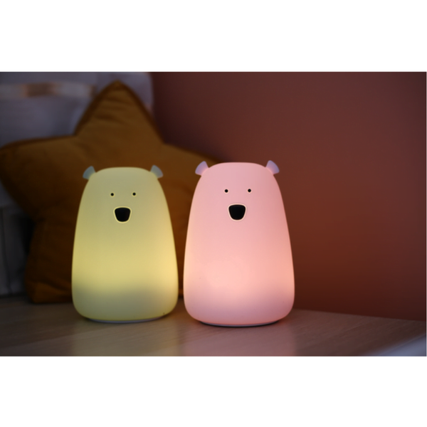 Miś jest wykonany z sylikonu - zapewnia bezpieczeństwo, jest miła w dotyku i można ją włączyć poprzez delikatne klepnięcie. Wielokolorowe żarówki umożliwiają zmianę barwy światła tym samym gestem. Lampka jest ładowana przez kabel Micro USB – może świecić od 12 do 15 godzin na jednym ładowaniu. Po przetrzymaniu włącznika przez 3 sekundy lampka zamruga i wyłączy się automatycznie po 2 godzinach, co pozwala oszczędzać baterie.
