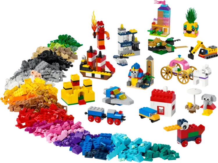 *Mnóstwo kolorowych klocków LEGO® — dzięki temu 1100-elementowemu zestawowi LEGO dzieci, dorośli i dziadkowie mogą budować wszystko, co podsunie wyobraźnia