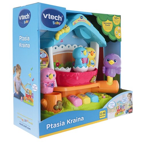 Firma V-Tech prezentuje wspaniałą interaktywną edukacyjna zabawkę Ptasia Kraina 61368 to dla dzieci w wieku od 12 do 36 miesięcy. Ptasia Kraina to wspaniały sposób na naukę poprzez zabawę! Dzięki wielu funkcjom pozwala on na poznawanie kształtów, zwierzątek, słówek i wielu więcej, i to oczywiście w języku polskim. Ponadto ta niezwykła zabawka posiada wiele ruchomych kolorowych elementów które zainteresują naszą pociechę i pozwolą na długą zabawę.