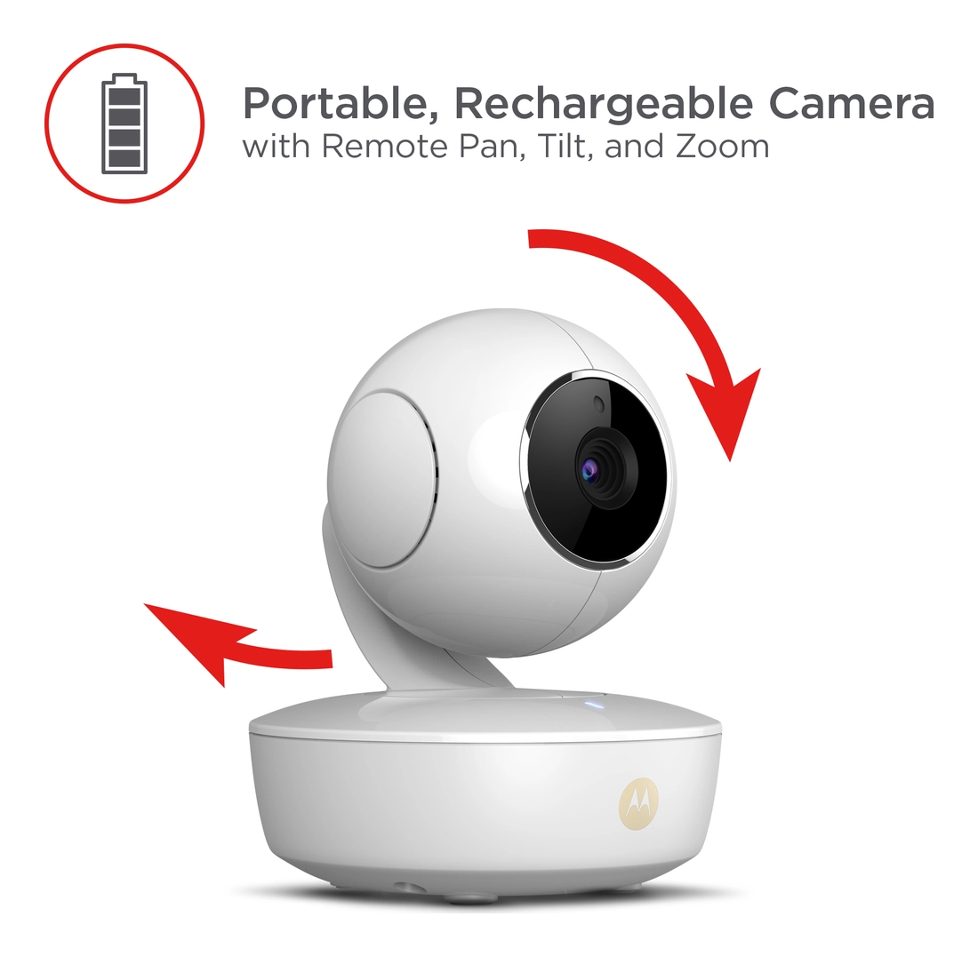 Innowacyjna niania elektroniczna z obrotową kamerą, zdalnie sterowana z dużym kolorowym 5-calowym monitorem na którym możesz z dowolnego miejsca w domu czy w ogrodzie doglądać swojego dziecka!